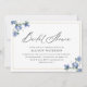 Convites chá de panela floral azul com script preto elegant