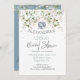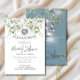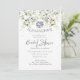 Marque a cena de uma comemoração temática do Disco. Azul empoeirado é a cor de fundo para este design Chá de panela personalizado elegante de bola Disco floral. As manchas prateadas estão também no design. Altere facilmente as informações para o seu próprio convite personalizado. Design de casamento Elegante de Chá de panela.