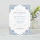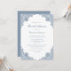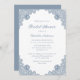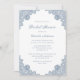 Elegante convites de chá de panela azuis empoeirados, com rendas florais azuis empoeiradas e uma fonte elegante. Personalizar facilmente online. Itens correspondentes disponíveis para complementar esses convites de chá de panela poeirentos azuis.