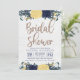 Chá de panela Floral Azul E Amarelo Por Metro-Eventos. Projetado com flores azuis e amarelas com falso roteiro de brilho dourado, uma introdução de excelente para o seu pequeno! Fornecimentos adicionais de coordenação de chás de fraldas estão disponíveis em Metro-Event.com e Metro-Events no Zazzle.