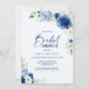 Convide seus amigos e família para comparecer ao seu chá de panela com este elegante chá de panela azul floral. Você pode adicionar facilmente todos os detalhes necessários ao texto personalizável. Escolha entre vários tipos de papel e estilos de canto para tornar seus convites exclusivos. Além disso, você tem a opção de baixar o convite se preferir um formato digital.