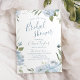Script moderno de chá de panela de caligrafia rodeado por aquarela floral em azul empoeirado e verde-sábio, elegante e romântico, Convites de chá de panela de excelente para casamento moderno, casamento romântico e casamento de jardim botânico em primavera e verão. Veja todas as peças correspondentes na coleção.
