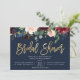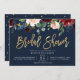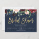 Convites chá de panela floral azul marinho de script Dourad