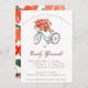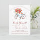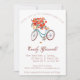 Junte-se a nós para celebrar a noiva a ser! Este convite bonito apresenta uma bicicleta azul de aquarela e um cesto de flores vermelhas.