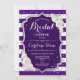 Chá de panela Floral Black Silver Purple Stripes, design branco roxo Elegante com prata brilhante falso. Possui confete, fonte de script, listras e rosas brancas. Perfeito para um Chá de panela na moda. Envie-me uma mensagem se precisar de mais personalização.
