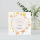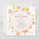 Um charmoso convite de chá de casamento com flores de aquarela macia em pêssego e amarelo em volta de um elegante layout circular. Perfeito para comemorar um casamento com um toque delicado e botânico.