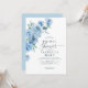 Pintou-se a mão chá de panela floral de aquarelas, com flores azuis-bebê claras e verde, com um roteiro de caligrafia moderno e fundo azul claro no verso do convite. Você pode personalizar o texto, o estilo da fonte, a cor e o tamanho em frente e atrás do convite. Você é bem-vindo para me contatar para encontrar itens correspondentes.