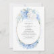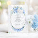 Convites de chá de panela de flores brancas e azuis macios