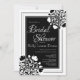 Design branco e preto elegante e clássico. O padrão floral e o quadro simples contrastantes fazem com que o convite seja visto, definindo um texto branco nítido. Os convites e as placas estão disponíveis em uma seleção de opções de forma (bordas arredondadas, redimensionadas etc.) e em uma seleção de texturas de papel. Os estilos de fonte, cor e tamanho são personalizáveis. Você pode encontrar outros designs com muitos produtos de coordenação em nossa loja, incluindo convites, salvar a data e as placas rsvp, obrigado que você marcar e muito mais.