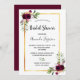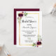 Na frente: fundo branco com falso quadro dourado. Decorados com flores escuras e burgosas, rosas, penas e verde ao estilo do bô. Personalize e adicione o nome da noiva a ser e os detalhes da festa. Fundo escuro e cor de burlão.