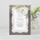 Flores brancas, rendas, madeira, luzes convites de chá de panela rústicos.