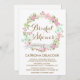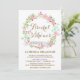 Chá de panela Floral Colorido, convite Whimsical e feminino, com coroa floral cor-de-rosa, esbranquiçada, chá verde e horta verde.