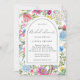 Chá de panela de arca floral com flores bonito do campo selvagem em roxo, lavanda, folhas verdes e muito mais, com um fundo elegante e editável