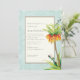 PALETA DE CORES: creme, bronzeado, verde, amarelo e laranja com água. COLEÇÃO DE DESIGN: Este é um Convite para Chás ou Chás de Noivados para corresponder à Coleção de Casamentos do mesmo nome. Azul claro sobre fundo azul sutil pintado com cor damasco com uma área de texto de creme macio e uma borda quente de cinza esticada. Sobreposta no design é uma ilustração botânica feita à base de água, uma elegante e sofisticada flor de fritillaria e um par de libélulas azul-aqua e negras. Toda esta design é feita de trabalho de arte de aquarela original por Audrey Jeanne Roberts. DESIGN PERSONALIZADO: Este convite vem em várias cores: beige bronzeado, bege cremoso, verde-aqua, azul-aqua e verde-quente. Também pode ser criado sem libélulas se preferir que estejam separadas no design original.