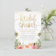 Convites Chá de panela Floral de Aquarela de Script Dourado
