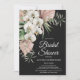 Este belo chá de panela de vassoura é chique e tenda e apresenta orquídeas de creme-d'água, frondes de palma, folhas tropicais cor-de-rosa em uma cinza de carvão profundo. É elegante e moderno e a fonte creme corresponde às orquídeas. É único e fácil de ler. Para fazer este belo convite, selecione Personalizar este modelo e digite suas informações. Em segundos você pode ver seus incríveis convites para chás de casamento.