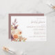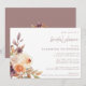 Um chá de panela floral de outono. Este chá de panela apresenta um arranjo floral elegante. Laranja enferrujada, terracota, tons profundos de terra roxa e neutra são características em toda a design. O convite perfeito para um chá casamento outono.