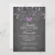 Comece o seu chá de panela de casamento de na moda com a nossa espantosa borboleta roxa de quadro contemporâneo com folhas delicadas e flores roxas bonito colocadas sobre um fundo de quadro comum com um quadro de proteção. Nosso chá de panela moderno, bonito e moderno é perfeito para um chá de panela primavera, chá de panela de verão, chá de panela de outono, chá de panela de inverno ou chá de panela de jardim. Visite nosso compro para ver selos de correio, autocolantes e notas de agradecimento. Disponível também em cores adicionais.