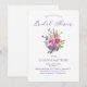 Flores bonito com sotaque verde este chá de panela em um adorável buquê violeta, roxo, pincel e aquarela rosa com texto violeta roxo.