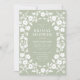 Convide seus entes queridos para comemorar com um toque de romance e arte. Este chá de panela personalizado apresenta um quadro floral branco desenhado à mão num estilo romântico de arte folclórica, delicado, intrincado e simplesmente belo. O fundo verde de sábio natural permite que os florais floresçam e adiciona um ar de elegância que sente tanto eterno quanto quente, fazer que seja um ajustado perfeito para tudo, desde festas de jardim de quintais até reuniões elegantes em interiores. Adicione uma reviravolta moderna com o código de QR personalizável no verso, perfeito para vincular ao seu site de casamento, registro de presentes ou formulário de RSVP, fornecendo aos convidados todos os detalhes na ponta dos dedos. Esta design não é apenas bonita, é também incrivelmente fácil de personalizar. Edite o convite on-line com os detalhes do evento em minutos, diretamente do navegador. Quer combinar com o seu tema? Você pode até ajustar a cor de fundo ou ajustar a matiz floral para criar uma aparência perfeitamente coordenada. Você tem a flexibilidade de escolher o que funciona melhor para o seu planejamento de eventos: convites impressos profissionalmente em papel luxuoso, perfeito para enviar como keepsakes queridas ou fazer o download instantâneo de um arquivo digital de alta resolução para compartilhamento rápido e fácil via e-mail ou texto, ideal para planos de última hora ou eventos ecológicos. Moderno, elegante, caprichoso e exclusivamente seu, este convite é uma maneira adorável de dar o tom para o dia especial. Comece a personalizar agora e crie um convite para chás de panela que se sinta correto.