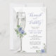 Este bonito design apresenta um buquê floral em tons de azul e um copo de champanhe de aquarela. Preencha suas informações sobre o modelo. Use o recurso "personalizar" para alterar as fontes ou o layout.