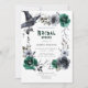 Chá de panela floral Emerald Green Halloween. Trabalho de arte de cor d'água pintada à mão original - rosas esmeraldas verdes e pretas, verde e chapéu de bruxas. Elegante chá de panela floral de cor d'água do Halloween em verde esmeralda. Você pode personalizar o texto, o estilo da fonte, a cor e o tamanho em frente e atrás do convite.