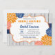 Os Sangue Floral de Cobalto Azul e Tangerina decoram este Chá de panela vibrante. O guião de cinza leve complementa o layout tipográfico moderno do convite. Também excelente para Chás de fraldas e Brunches!