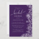 Chá de panela Floral de Pedras de Jewel Roxas Este convite apresenta flores desenhadas em branco e caligrafia personalizada. A cor do tom de joia roxa é o pano de fundo perfeito para este convite.