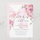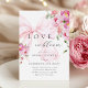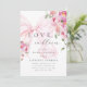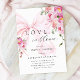 Celebre a noiva a ser com este elegante chá de panela "Amor em Bloom". Apresentando um delicado design floral de aquarela em tons cor-de-rosa suave, este convite expele encanto e sofisticação. Um arco cor-de-rosa e uma tipografia de escrita graciosa adicionam um toque romântico, fazer-o a escolha perfeita para uma festa de jardim, primavera ou chá de panela com tema floral.
