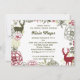 Características que deste design rústicas uma beira floral com floco de neve acentua e uma rena do casal. As cores são uma verde azeitona e vermelhos escuro, se você precisa um esquema de cores diferente ou uma mensagem diferente do tamanho do convite por favor mim.
