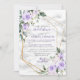 Moderno e moderno, este chá de panela maravilhoso design apresenta letras de mão rústicas, uma geométrica dourada falsa embelezada com rosas e flores roxas de lavanda lilática, sobre uma textura falsa de mármore branco. Parte de um conjunto correspondente. Convidados Elegantes de Direitos Autorais. Todos os direitos reservados.