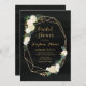 Chá de panela com brilho fino dourado e design floral branco e fundo preto.