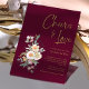 Ponha o tom para um chá de panela verdadeiramente inesquecível com o nosso Chá de panela Floral Dourado Elegante. Este convite impressionante apresenta um fundo luxuoso e arrojado com delicados elementos florais de aquarela. A frase escrita à mão "aplausos ao amor" na cor do sotaque dourado adiciona um toque de elegância e sofisticação. Nossos convites são personalizados com o nome da noiva e os detalhes do chá de panela em cor de sotaque dourado, fazer-os de uma manutenção realmente única e especial. São perfeitos para qualquer tema de chá de panela, do clássico ao rústico ao moderno. Recursos: - Elegante design floral burgundy dourado - Frase "torcida ao amor" escrita à mão - Personalizada com o nome e os detalhes do chá de panela da noiva - design de fundo da Borgonha Ordene seu elegante chá de panela floral burgundy dourado hoje e comemore a noiva no estilo!