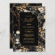 Convide seus amigos e entes queridos para o seu chá de panela com este convite que apresenta um elegante creme e spray floral preto com folhas de ouro sobre fundo de mármore preto e dourado. O texto personalizável permite que você adicione facilmente seu nome, data, local e os detalhes de celebração necessários. Vários tipos de papel e estilos de canto estão disponíveis para seus convites exclusivos, juntamente com a opção de download.