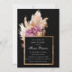 Este Convites de chá de panela Premium Black Boho - apresenta texto branco escrito à mão e elegante com burgundy chic e flores secas e ervas do deserto, quadro de ouro sobre fundo preto. O verso do convite é preto lacônico com boquete de burgundy orhid, outras flores e figos. Torne seu casamento memorável e brilhante com esta coleção de outono premium.
