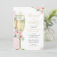 Este bonito design apresenta um buquê floral em tons de rosa e um copo de champanhe de aquarela. Preencha suas informações sobre o modelo. Use o recurso "personalizar" para alterar as fontes ou o layout.