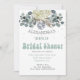 Marque a cena de uma comemoração temática do Disco. Azul empoeirado é a cor de fundo para este design Chá de panela personalizado elegante de bola Disco floral. As manchas prateadas estão também no design. Altere facilmente as informações para o seu próprio convite personalizado. Design de casamento Elegante de Chá de panela.