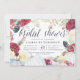 Apaixonem-se por estes convites de chá de panela elegantes de outono. Design apresenta uma borda de flores de cor d'água, penas boho e abóboras brancas. O "Chá de panela" aparece no topo em letras de escala gráfica. Personalize com seu chá de panela e detalhes do registro abaixo em letras azuis ricas de marinho.