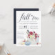 Apaixonem-se por estes convites de chá de panela elegantes de outono. Design apresenta duas abóboras de aquarela pastel decoradas com flores de borboleta e penas de vassoura. "Apaixonar-se" aparece por cima em letras de escala gráfica. Personalize com seu chá de panela e detalhes do registro abaixo em letras azuis ricas de marinho.