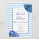 Bonito flores azuis de hydrangea em tiras azul e branca. Os convites e as placas estão disponíveis em uma seleção de opções de forma (bordas arredondadas, redimensionadas etc.) e em uma seleção de texturas de papel. Os estilos de fonte, cor e tamanho são personalizáveis. Você pode encontrar outros designs com muitos produtos de coordenação em nossa loja, incluindo convites, salvar a data e as placas rsvp, obrigado que você marcar e muito mais.
