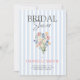 Este convite apresenta um fundo azul-céu e branco listrado com um buquê de aquarela colorido no centro. A parte traseira permite adicionar seu site de casamento ou link ao seu registro, se desejar. Pode ser usado como um convite para chás de panela ou chás de fraldas. Também disponível em faixas cor-de-rosa. Coleção de cheios em breve!