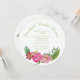 Chá de panela exclusivo feito em estoque de cartão redondo e fundo branco. Gráficos de pequenas bolinhas verdes correm ao redor da borda externa e trabalho de arte de bonito aquarela de flores de pénia rosa e coral decoram o fundo. Personalize o texto verde colorido do seu evento nobre. Estão disponíveis guardanapos, pratos e xícaras de papel de coordenação.