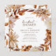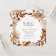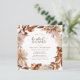 Estes convites de chá de panela quadrados elegantes apresentam cor d'água queimada, laranja queimada e folhas de terracota pintadas manualmente, dahlias creme e bege, e belos rosas de cor ferrugem em fundo branco. Localizar itens correspondentes na Coleção Romance do outono Branco.