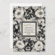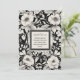 A imagem apresenta um quadro retangular com um centro de vazio, rodeado por um intrincado e elegante design floral. As flores e folhas são reproduzidas num esquema monocromático de preto e branco, criando um contraste impressionante em relação ao fundo escuro. O padrão floral é detalhado e ornamentado, com vários tipos de flores e folhagem se entrelaçando ao redor do quadro. A estética global é clássica e sofisticada, fazer adequado para diversos fins decorativos. No centro, em elegantes fontes cursivas e impressão, o texto lê "Chá de panela" seguido de uma mensagem sincera: "Com o brilho dos corações e o champanhe para beber, convidamos vocês a comemorar a próxima viagem do [nome da noiva] ao corredor." O marcador de posição "[nome da noiva]" indica onde o nome real da noiva a ser deve ser inserido ao personalizar o convite.