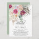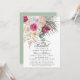 Convites de chá de panela Alegantes de Boho Floral de Watercolor apresentam um buquê de aquarela na moda com eucalipto, frondes de palma, rosas, peões e samambaias em tons mutados de ameixa, burgundy, verde, pêssego e rosa. Personalizado editando o texto nas caixas de texto fornecidas. Elaborado por ©Evco Studio www.zazzle.com/store/evcostudio