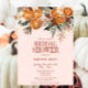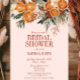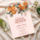Este elegante chá de panela floral cor-de-rosa cor-de-rosa cai num verde floral. Laranjas apresentadas em laranja queimado com bastões de canela e flores de outono. Todo o texto pode ser alterado.