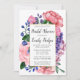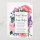 Nosso Chá de panela Floral Feminino é um convite perfeito para convidar a família e amigos de sua futura noiva para seu próximo primavera ou chá de panela de verão. Este convite apresenta lindas tonalidades de flores rosas, roxas e azuis atrás de um quadro de ouro com caligrafia e texto elegantes.
