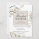 Um chá de panela distinto com rosebudas brancas elegantes e cor d'água verde e moldando seu texto personalizado. Um quadro quadrado bege se coordena com as cores neutras das rosebuds e adiciona um sotaque atraente ao convite. Este esquema de cores neutra funciona bem em qualquer estação do ano. Personalize o modelo de texto com os detalhes do seu chá de panela.