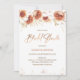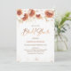 Laranja queimada Terracotta Floral Chá de panela Belo chá de panela floral laranja queimado, apresentando algumas flores e folhagem em tons naturais e terracotta. Este chá de panela floral moderno apresenta alguns pomares brancos nas seções superior e inferior do convite. A parte de trás do convite é uma cor de terracota ou laranja queimada que pode ser alterada.