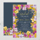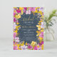 Celebre o amor com este chá de panela floral único pintado à mão. A design boho-moderna apresenta tons vibrantes de roxo, verde, lavanda e amarelo, criando uma atmosfera ousada e alegre em azul empoeirado. As flores soltas de aquarela adicionam um toque de cinza, enquanto o falso confete de ouro brilhante traz um toque de glamour. A moderna e elegante fonte de tipografia de script adiciona um elemento sofisticado e na moda ao convite. Perfeito para uma celebração inspirada na boêmia, este convite original ilustrado à mão dá o tom para um evento alegre e memorável.